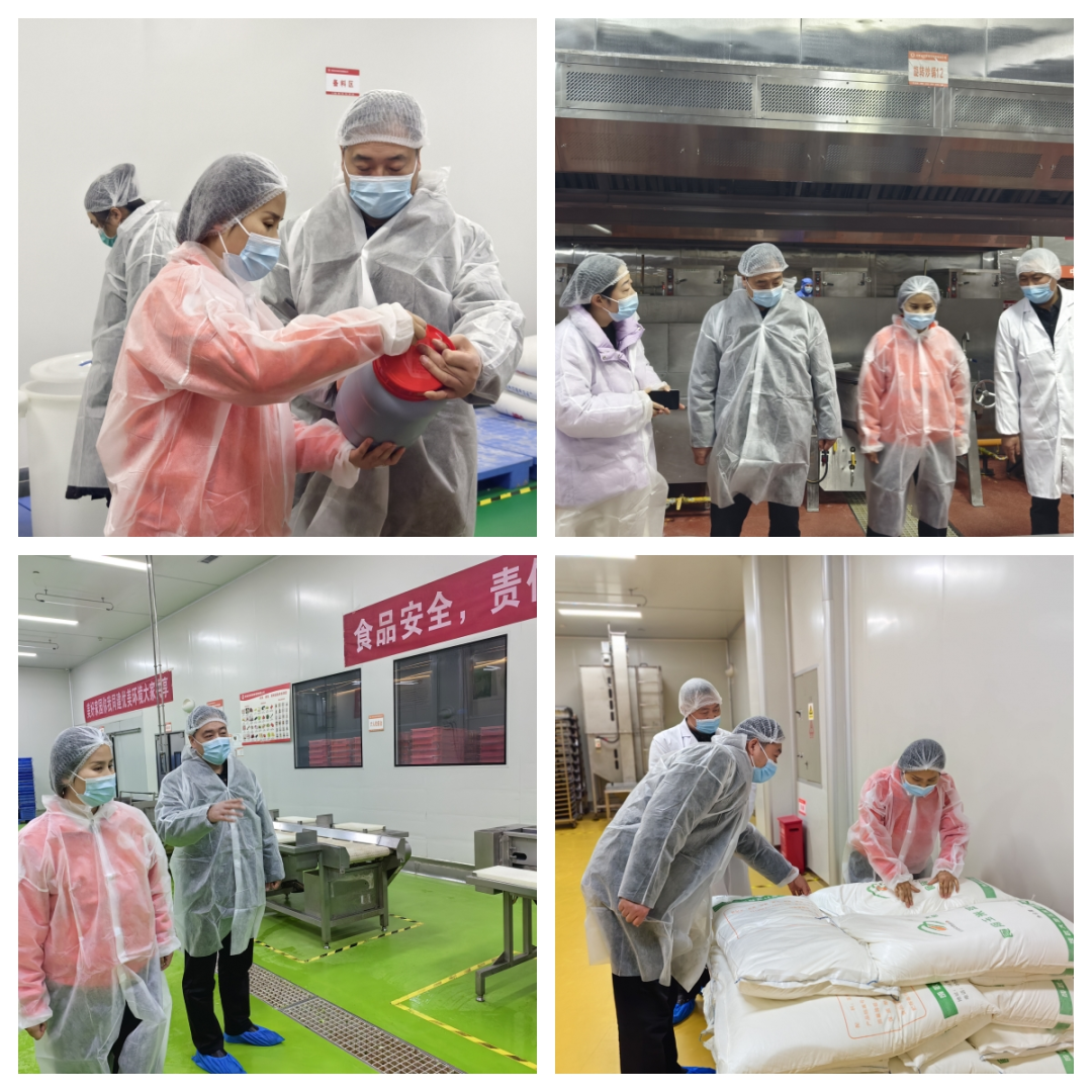 随后,学校督导团身着专业防护服,依次通过风淋消毒通道进入核心生产区。在工作人员的引导下,督导团依次检查了毛菜处理间、切配间、热炒区、打包线、蒸饭间、主食库、干调库等,代表们认真观察并记录配餐公司供餐前的各项准备情况。