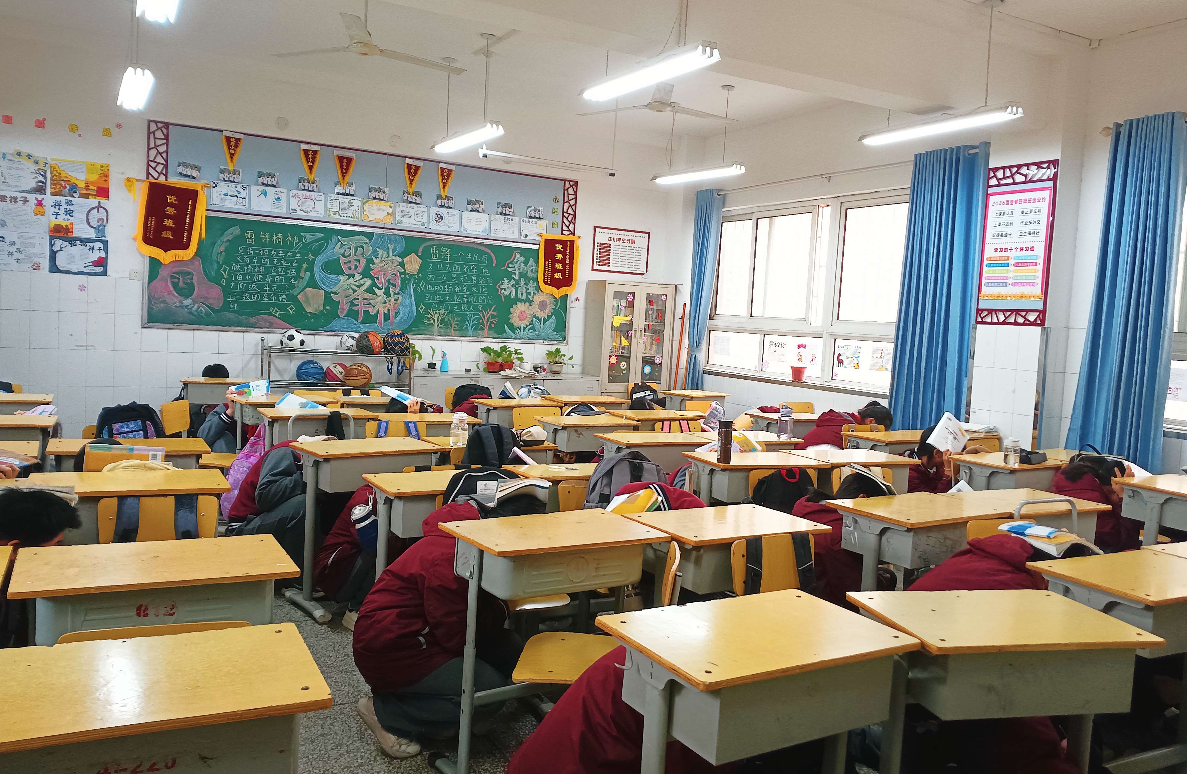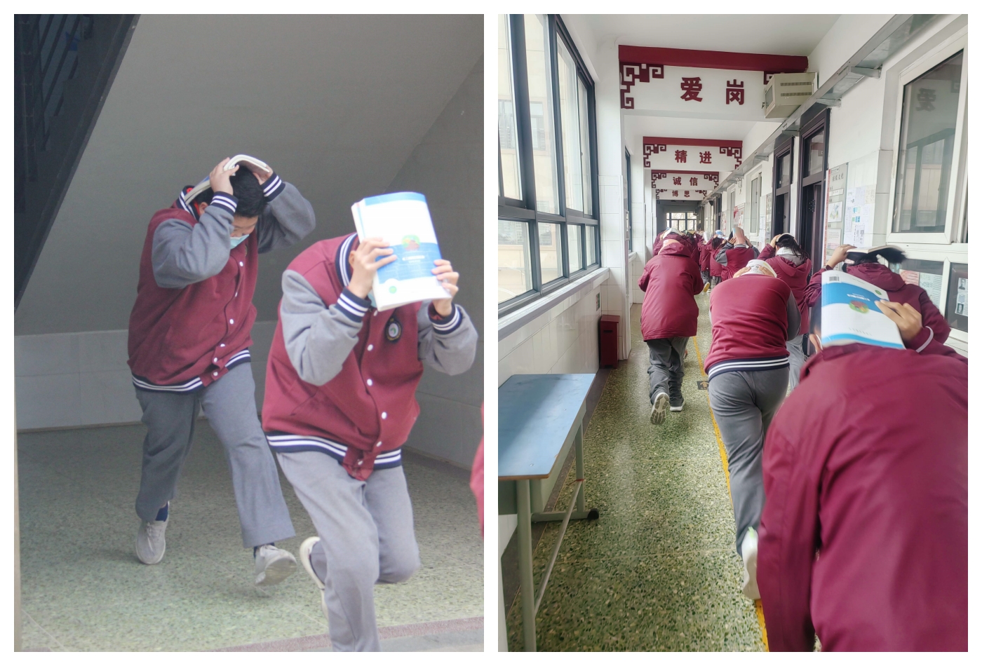 各班学生进行避险逃生