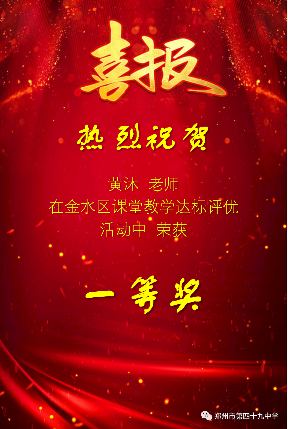 黄沐老师荣获金水区课堂教学达标一等奖