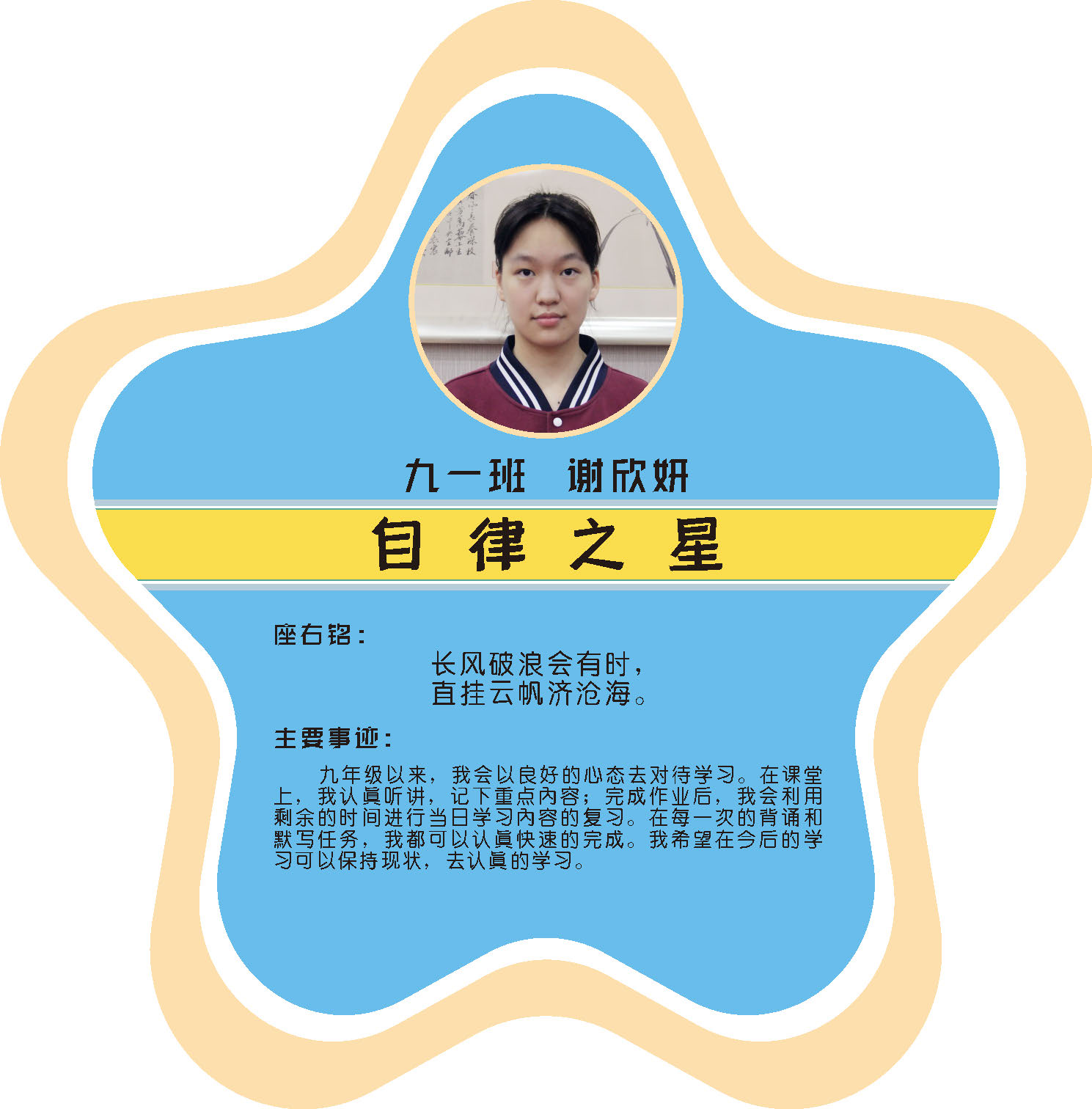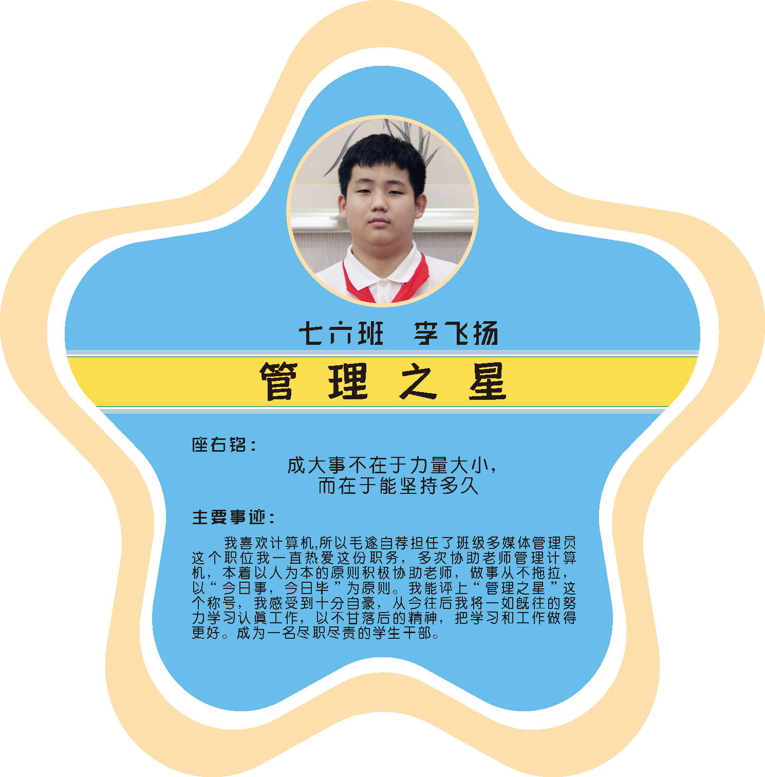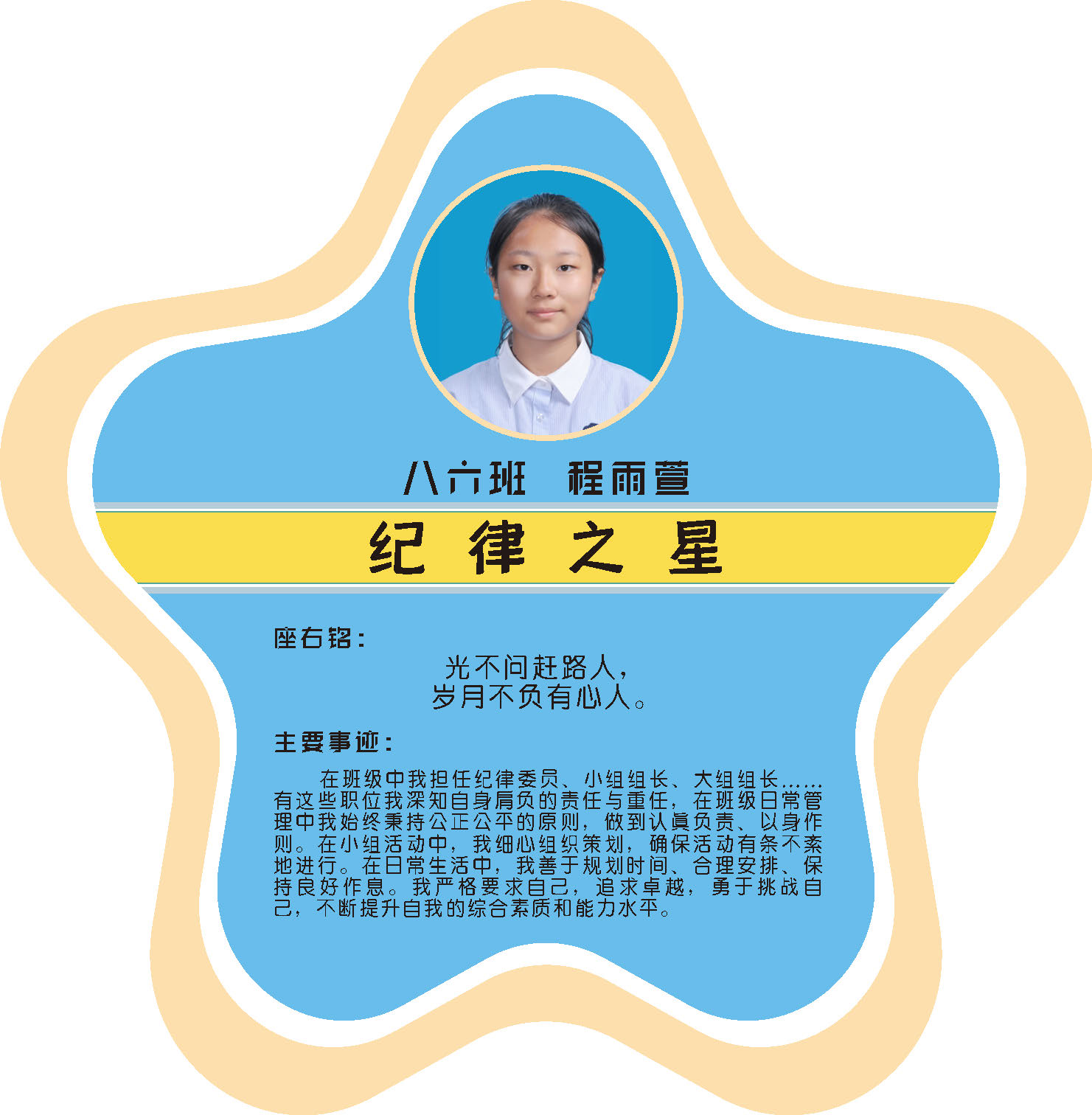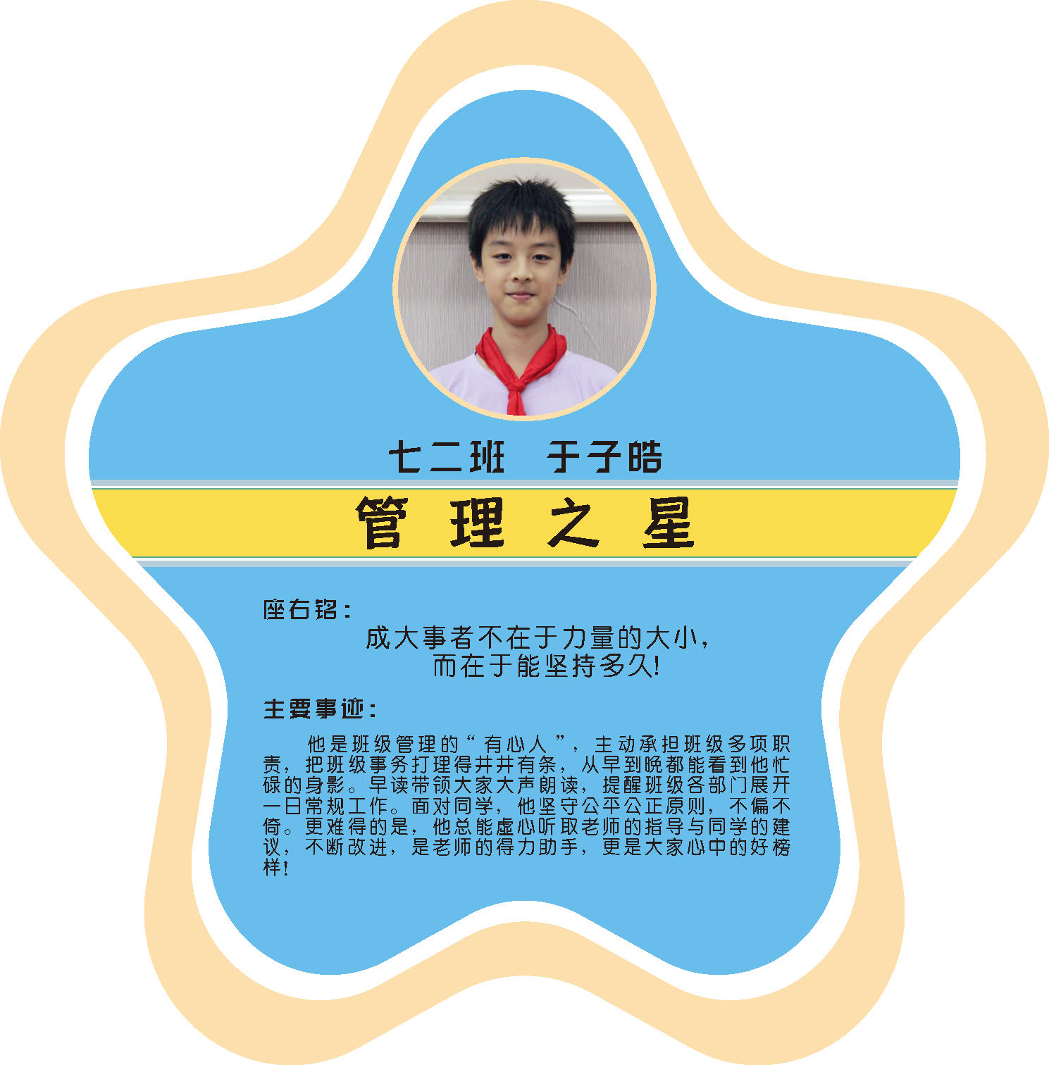 本期校园之星主题为“点亮平凡生活的微光”,他们或许来自不同年级,却同样以行动点亮平凡日常。结合学生日常行为表现,评选出年级之星、学习之星、勤奋之星、管理之星、自律之星、志愿服务之星、文艺之星、劳动之星、纪律之星。这些来自校园各领域的‘微光’,汇聚成榜样的星河,这就是本期校园之星们。