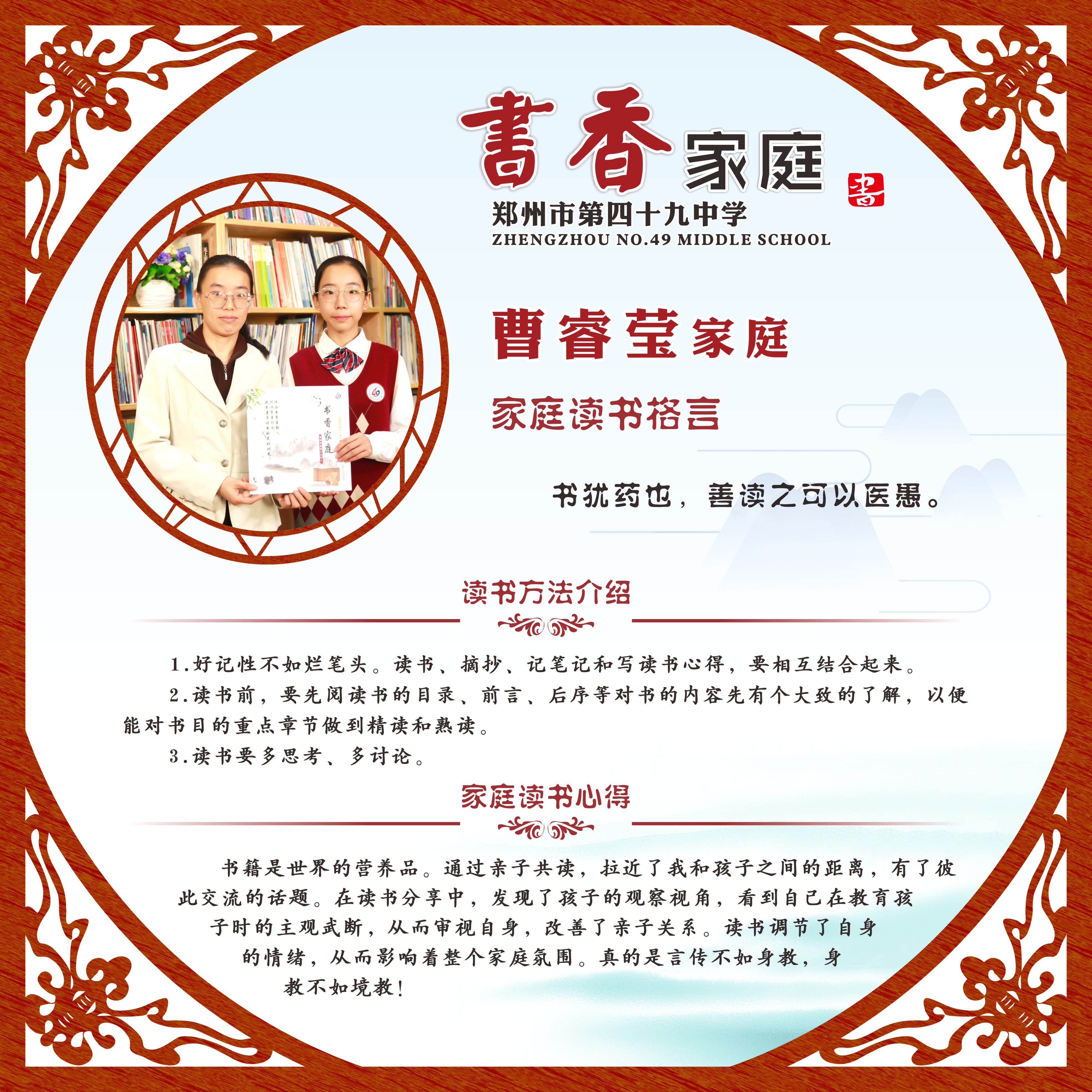 【书香家庭】郑州49中2021年书香家庭 让阅读成为一种习惯
