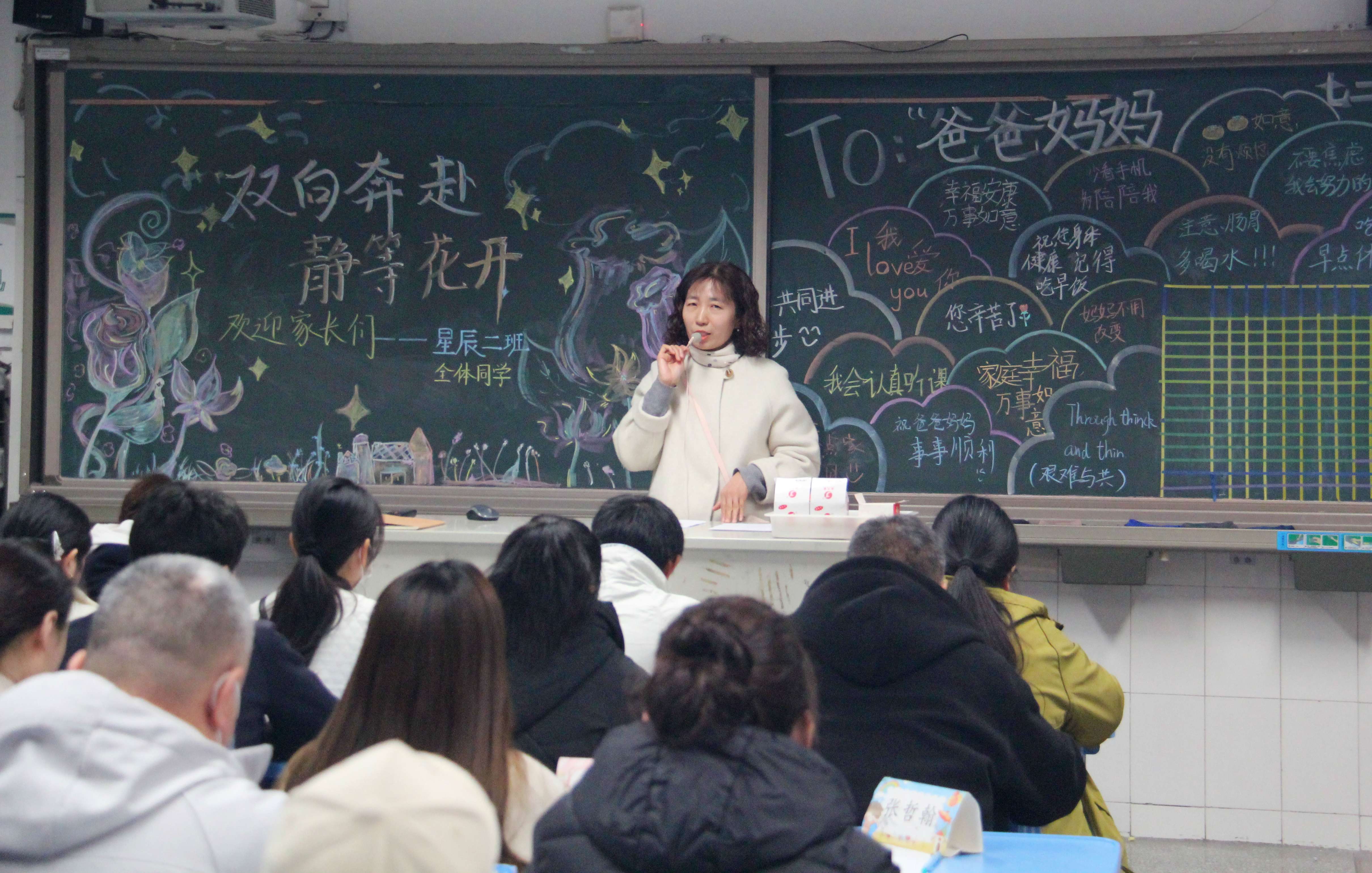 家长按时进班,有序参加家长会