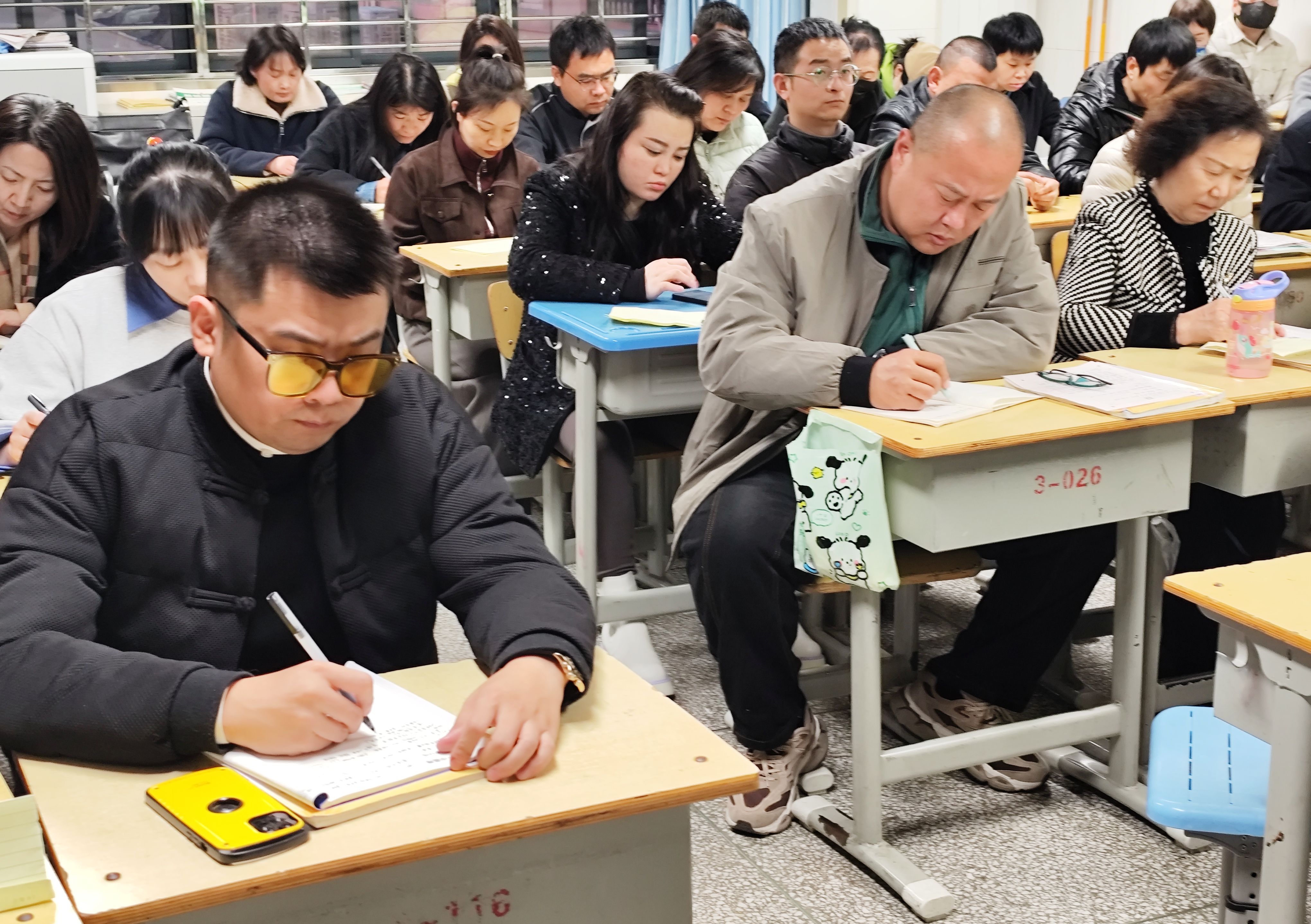 家长认真记录会议内容