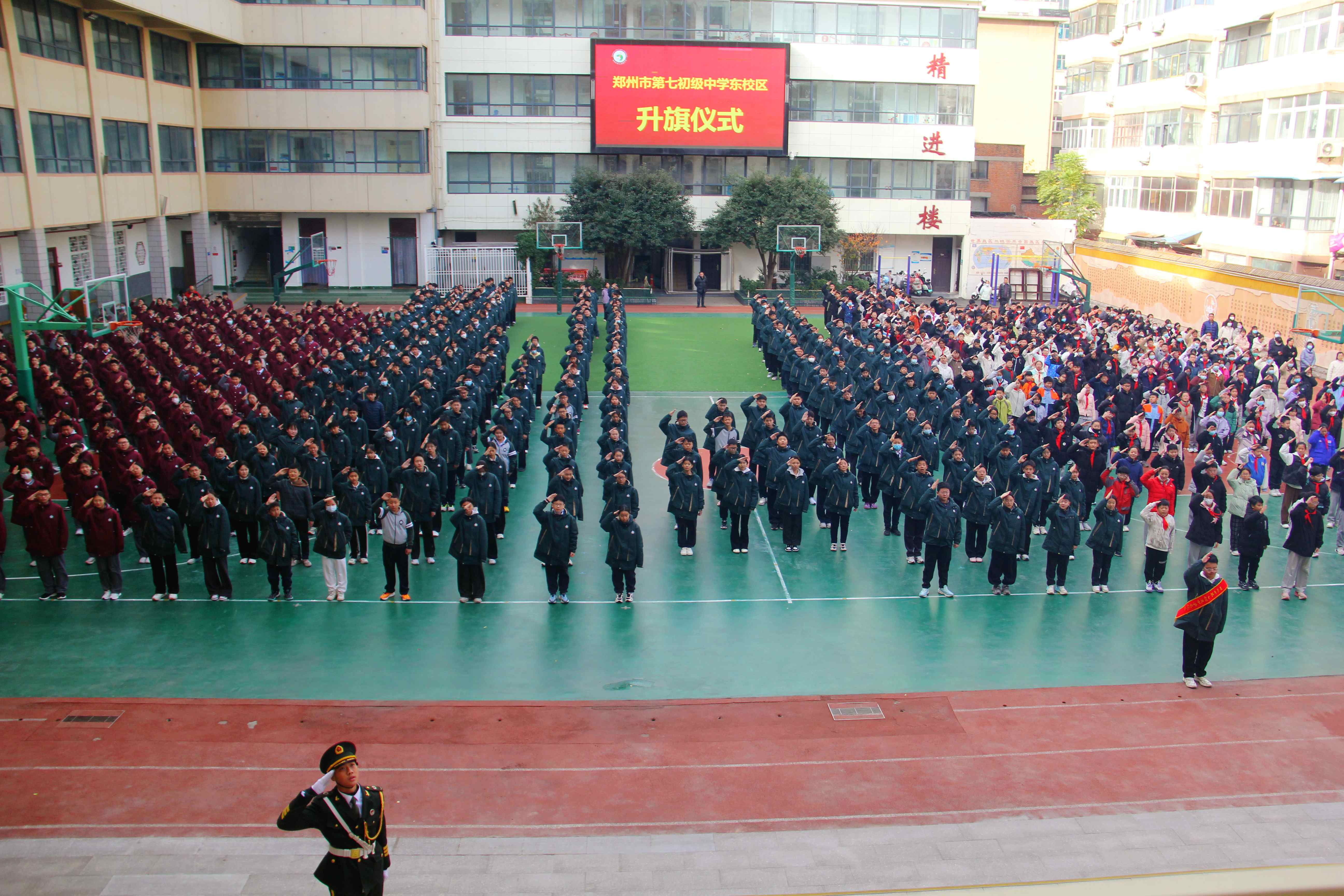 郑州七初东校区举行第十三周升旗仪式