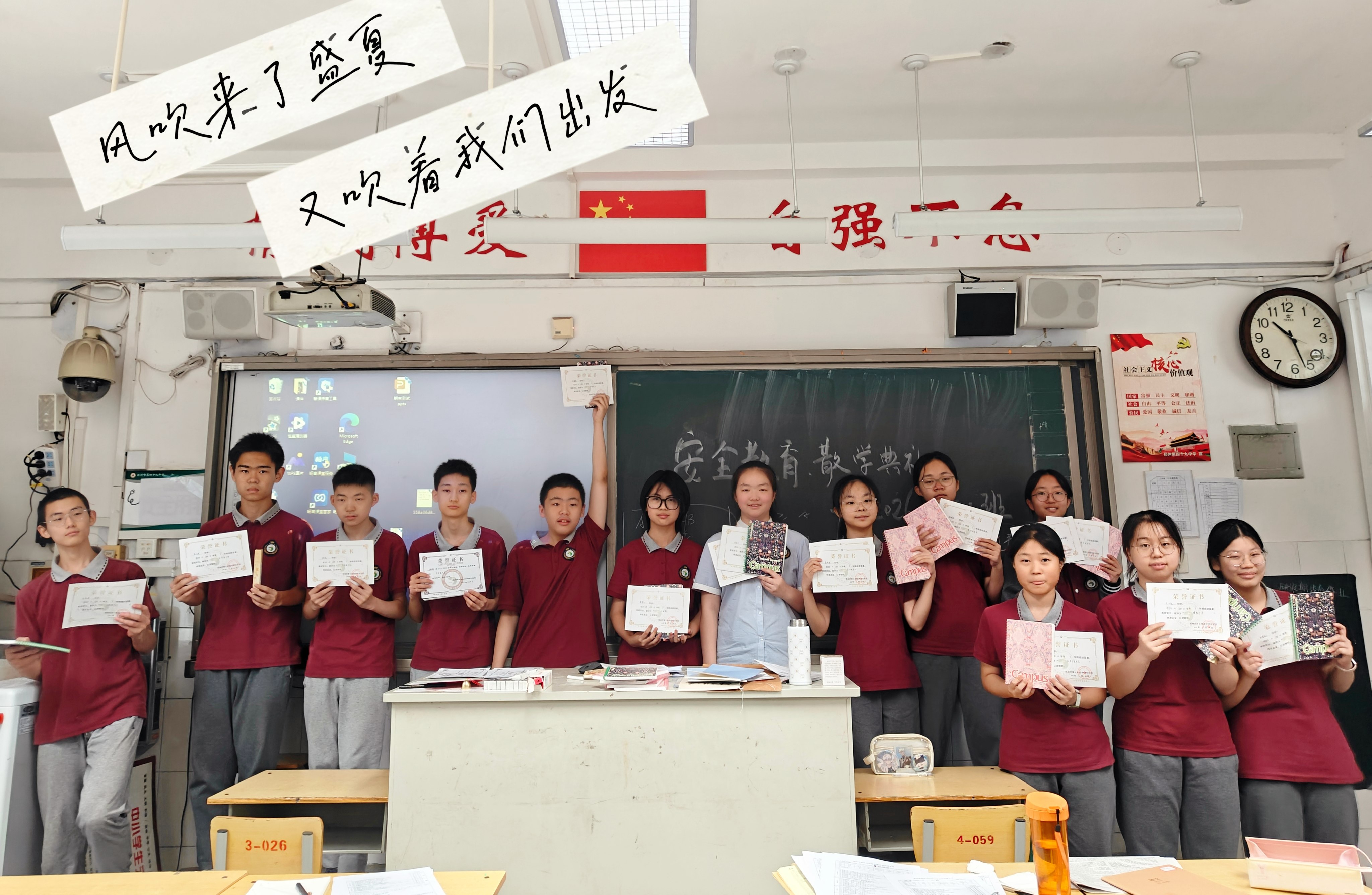 随后,各班开展综合素质评价、评优评先,并表彰了三好学生、优秀班干、优秀少先队员,文明学生、突出进步生、优秀小组等百名学生标兵。各班班主任从暑期计划、体育锻炼、综合实践、安全教育、假期阅读等方面对暑期学习生活进行布置。
