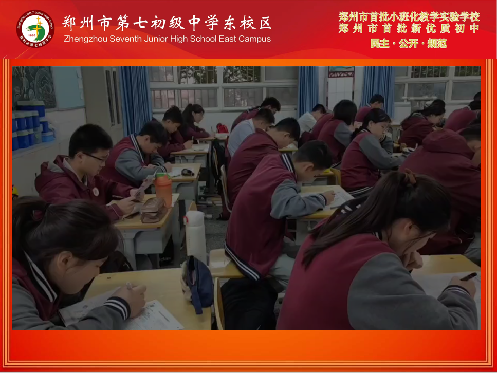 此外 ,楚书记分三天用三场报告的时间向七八九年级全体家长,分享了学校加入七中教育集团后取得的变化,楚书记肯定了七初东校区老师们的敬业精神,用视频的形式展示了七初东校区学子们在清晨入校、早读、课间跑等具体时段的精神面貌。楚书记讲到,学生的成绩在稳步提升,学校的社会认可度在稳步提升,未来学校一定会发展的越来越好。