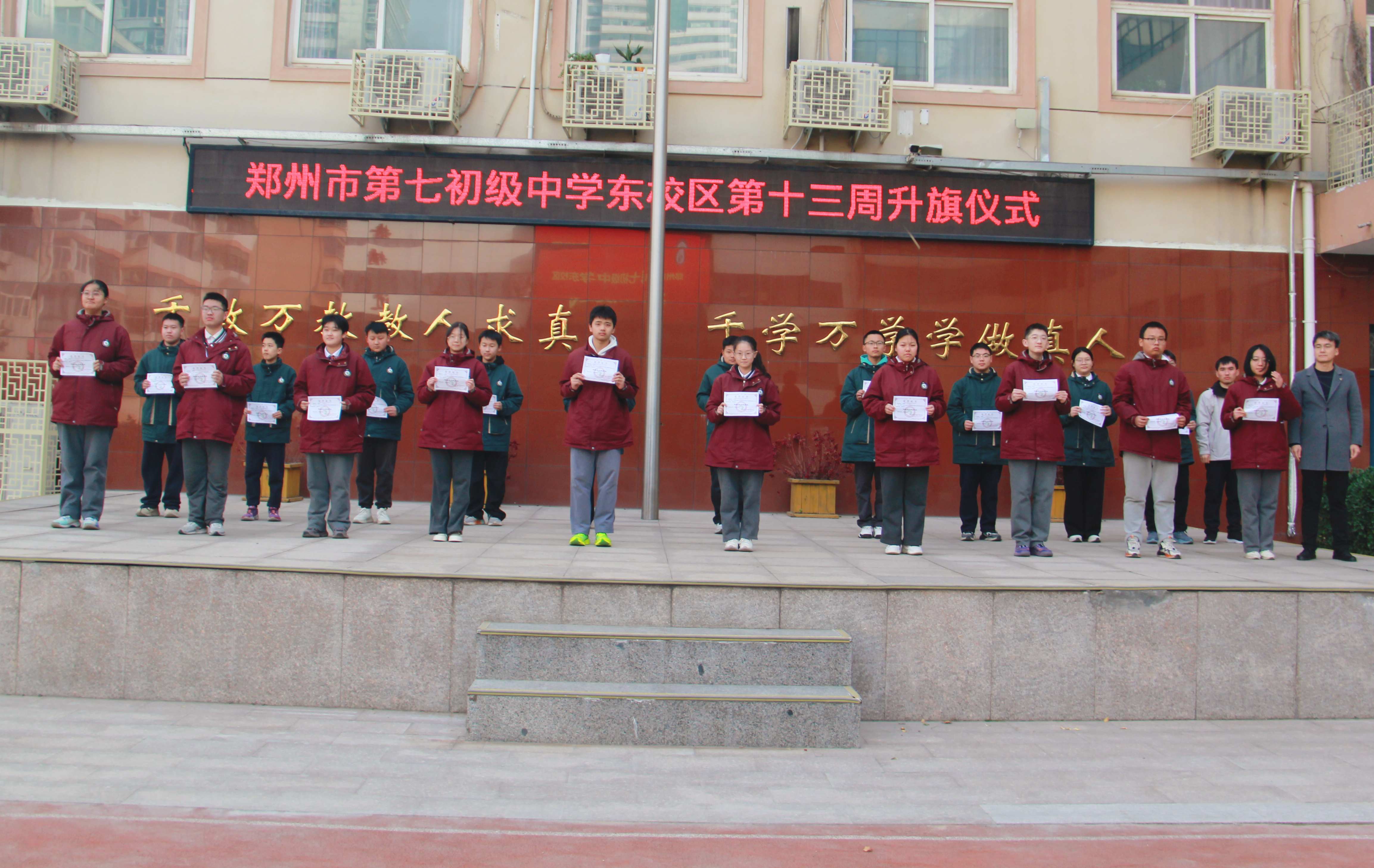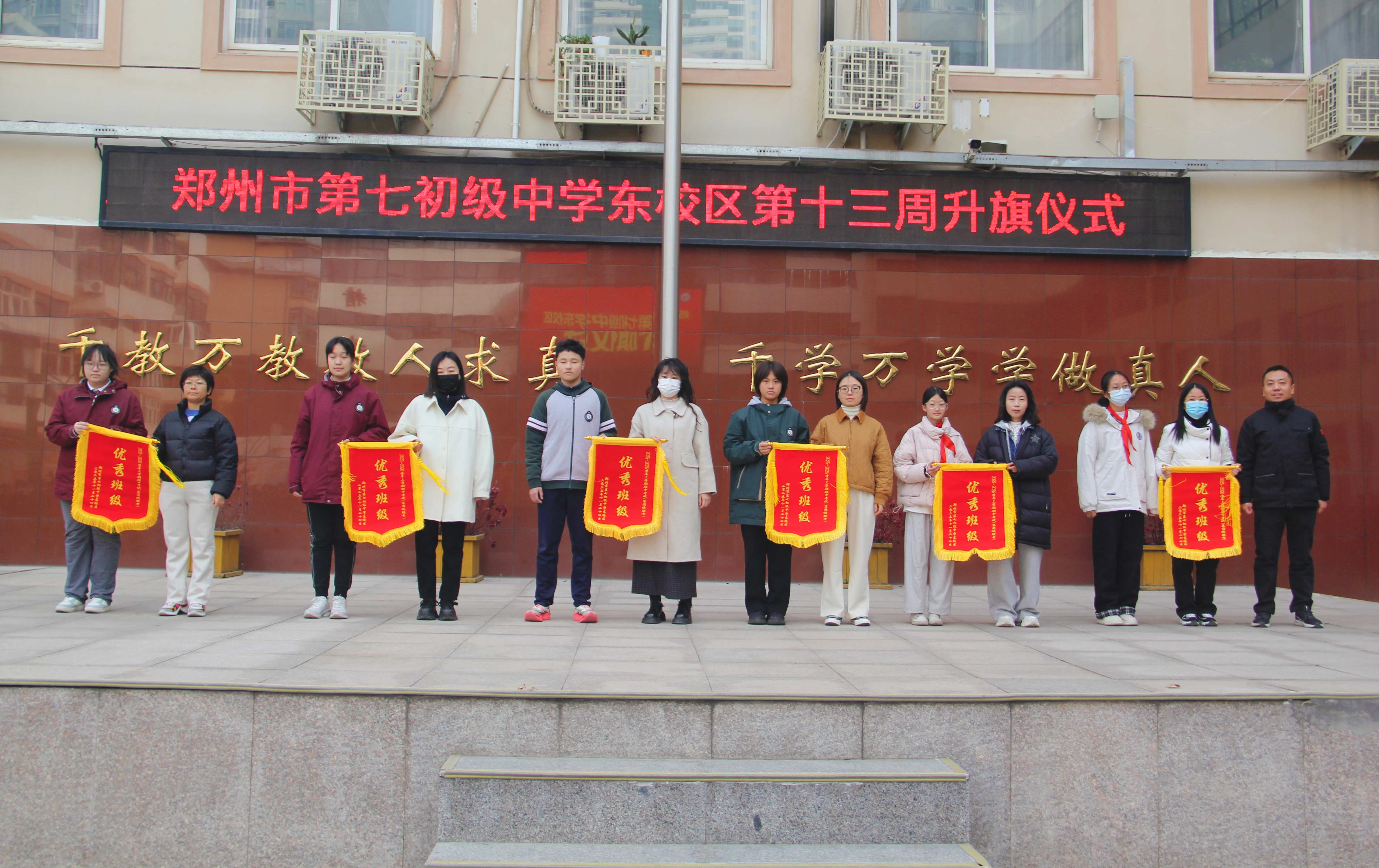 郑州七初东校区举行第十三周升旗仪式暨期中表彰大会