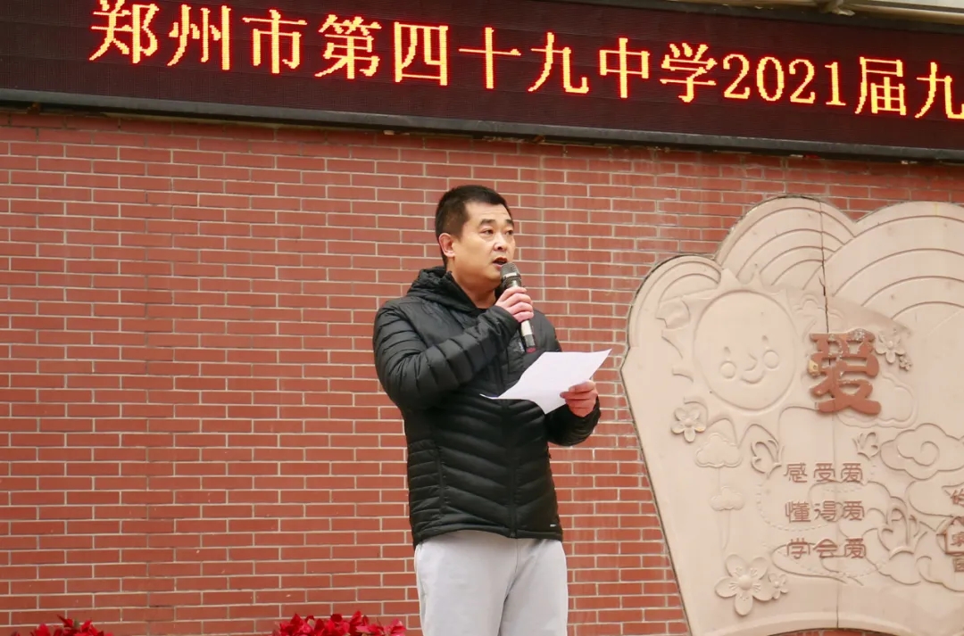 郑州49中年级组长葛向锋做动员讲话