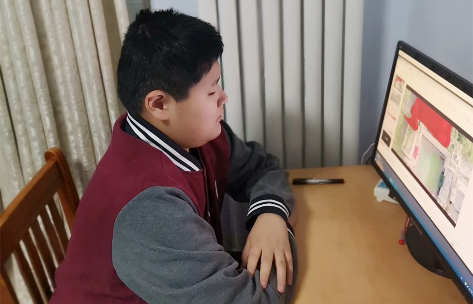 班主任与学生进行视频会议