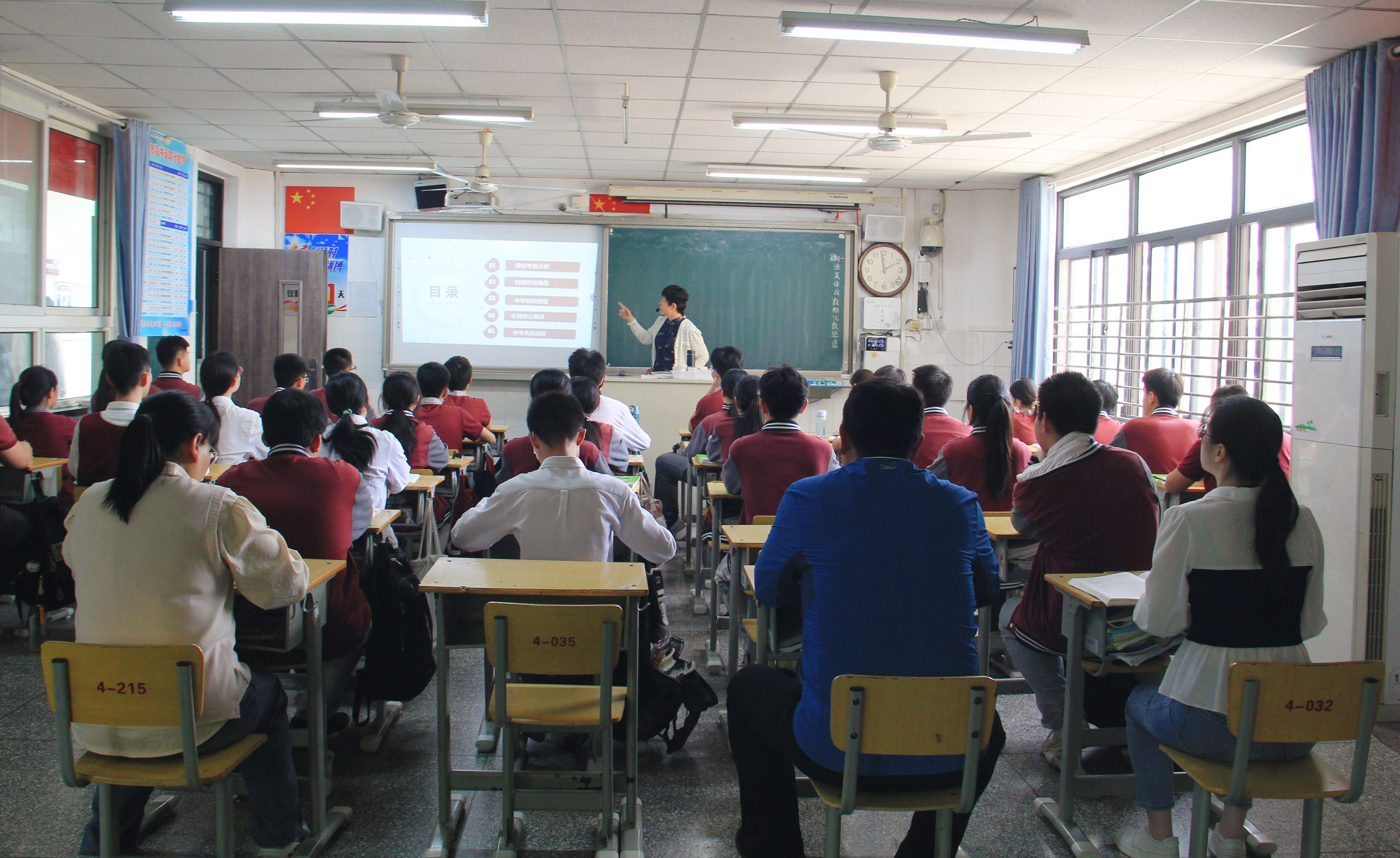 4月22日和24日下午,在文理科集体教研时间,郑州市第七初级中学东校区九年级备课组长课前精心准备,奉献了一堂堂精彩的复习课,两校区的九年级老师们深入到各自学科的课堂认真聆听。