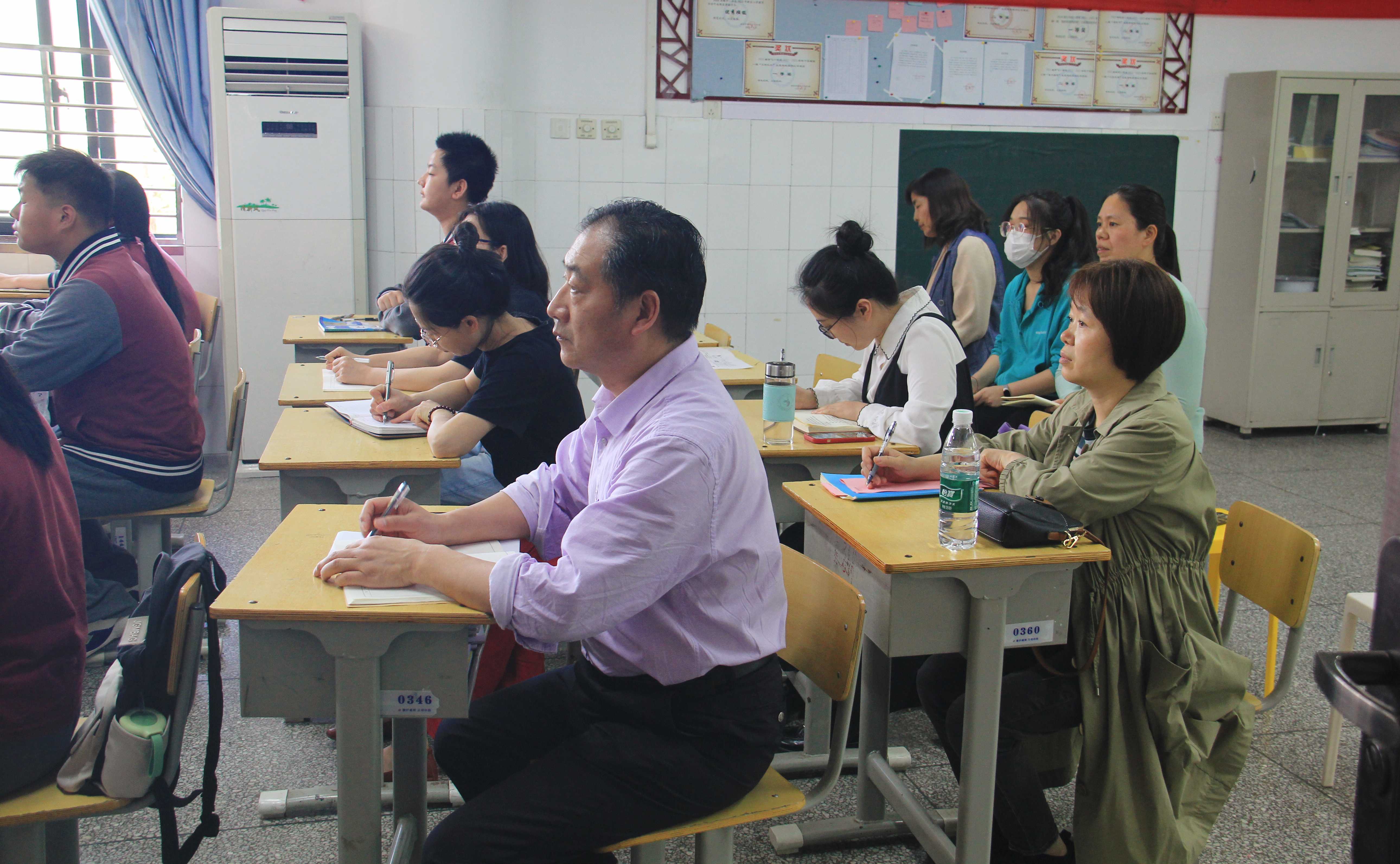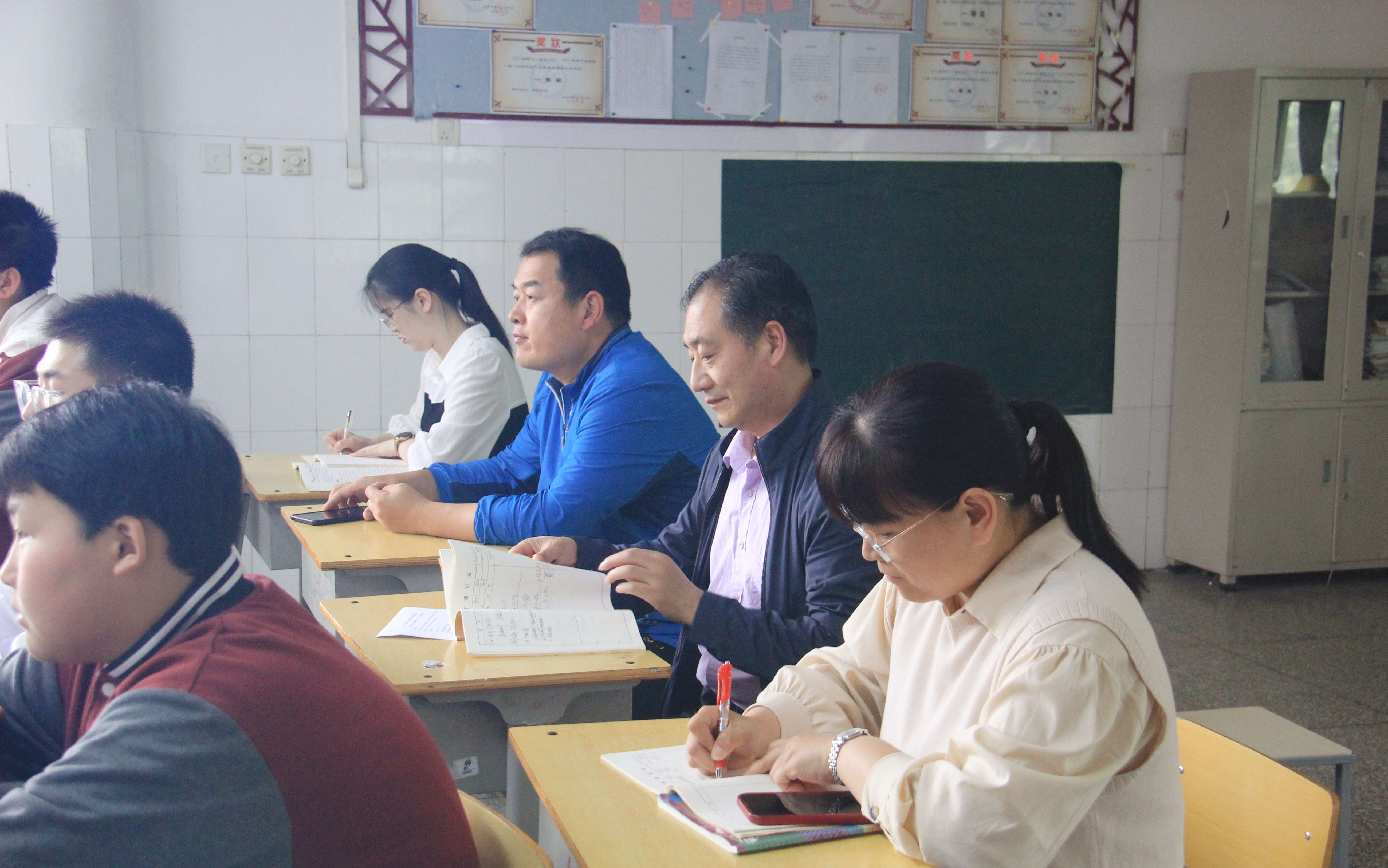 两校区九年级全体老师们认真听课